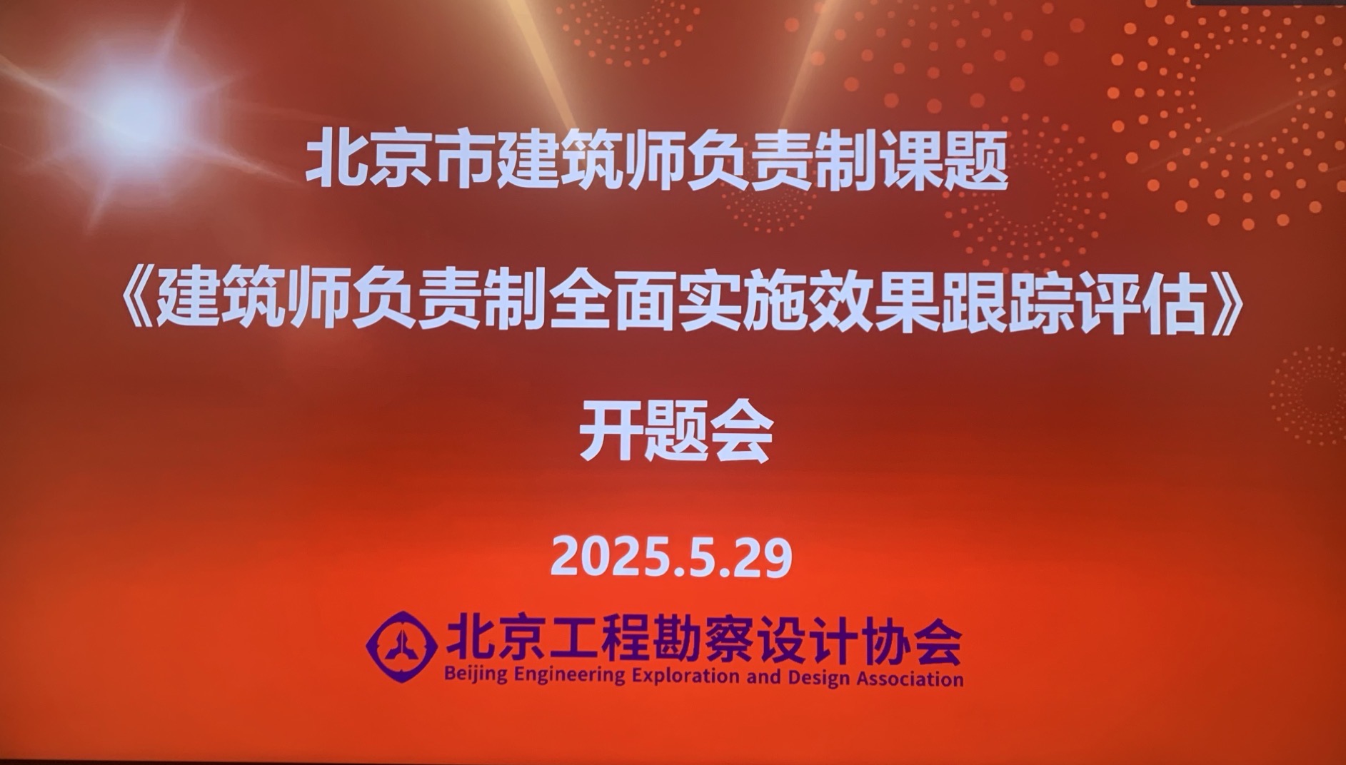 《建筑师负责制全面实施效果跟踪评估》课题启动会2025年5月29日下午,北京市规划和自然资源委员会、北京市建筑师负责制试点工作专班及课题组在北京工程勘察设计协会组织召开本年度建筑师负责制课题《建筑师负责制全面实施效果跟踪评估》开题会。会议由北京市规划和自然资源委员会勘察设计管理处副处长涂晓明主持,邀请北京市建筑设计研究院股份有限公司原副总经理郑实、北京市住宅产业化集团有限公司党委副书记、总经理王炜、北京